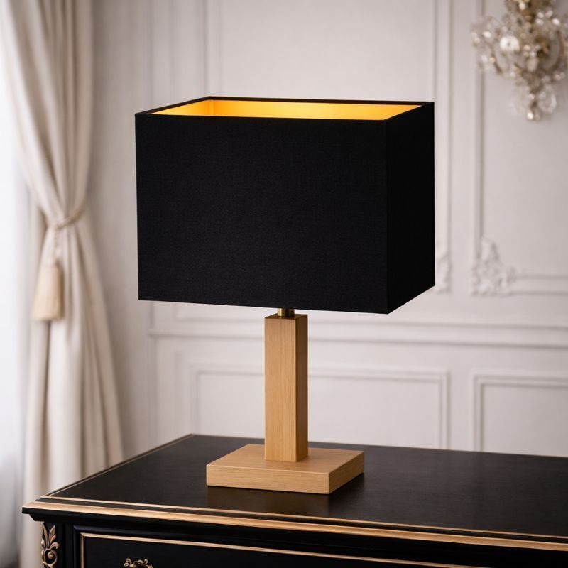 Apportez une touche chaleureuse et sophistiquée à votre intérieur avec cet abat-jour en coton noir de forme carrée à coins vifs. Son extérieur profond et élégant s’accorde parfaitement avec l’intérieur doré, qui réfléchit la lumière pour créer une ambiance feutrée et précieuse.