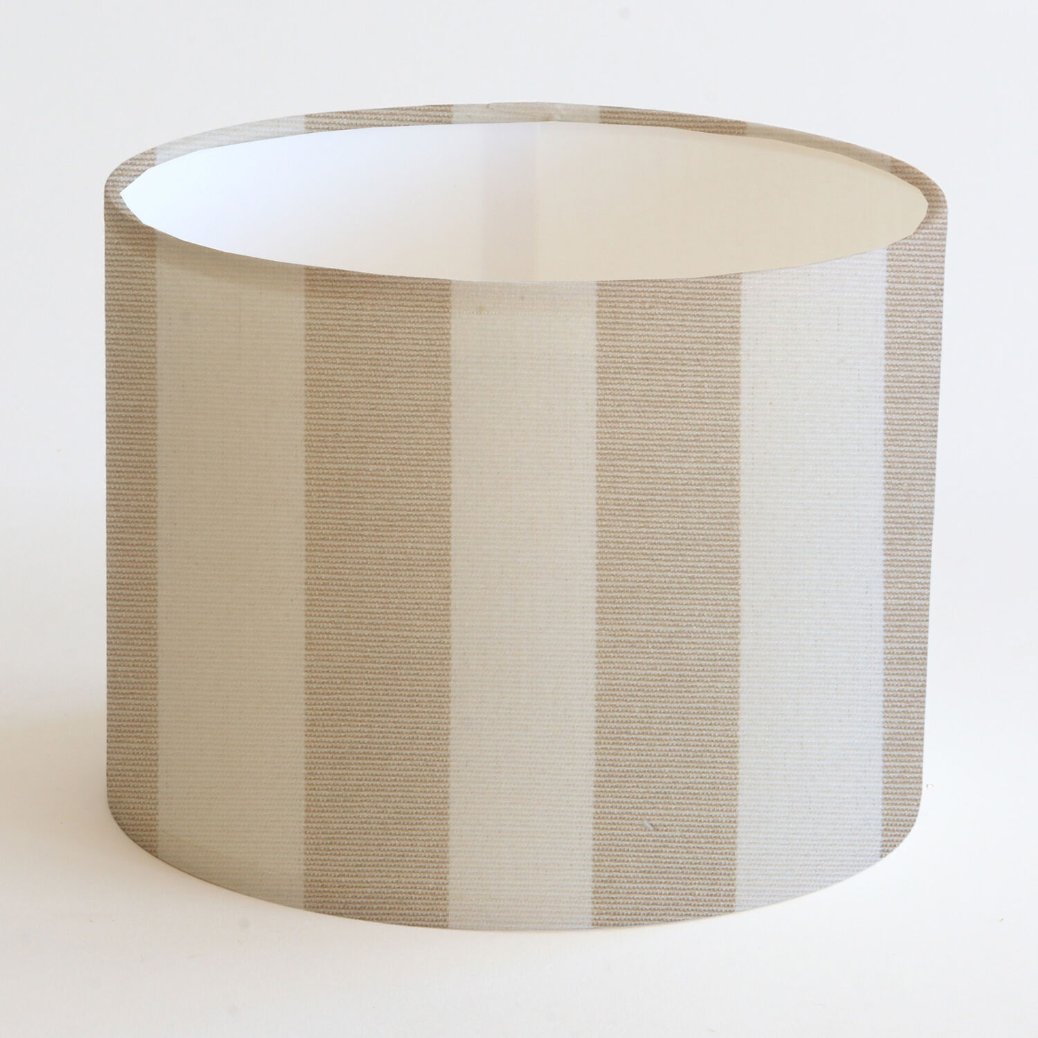 Abat-jour cylindrique à rayures coloré, au style à la fois rétro et moderne. Son tissu tissé diffuse une lumière douce et chaleureuse, idéale pour une chambre ou un salon.