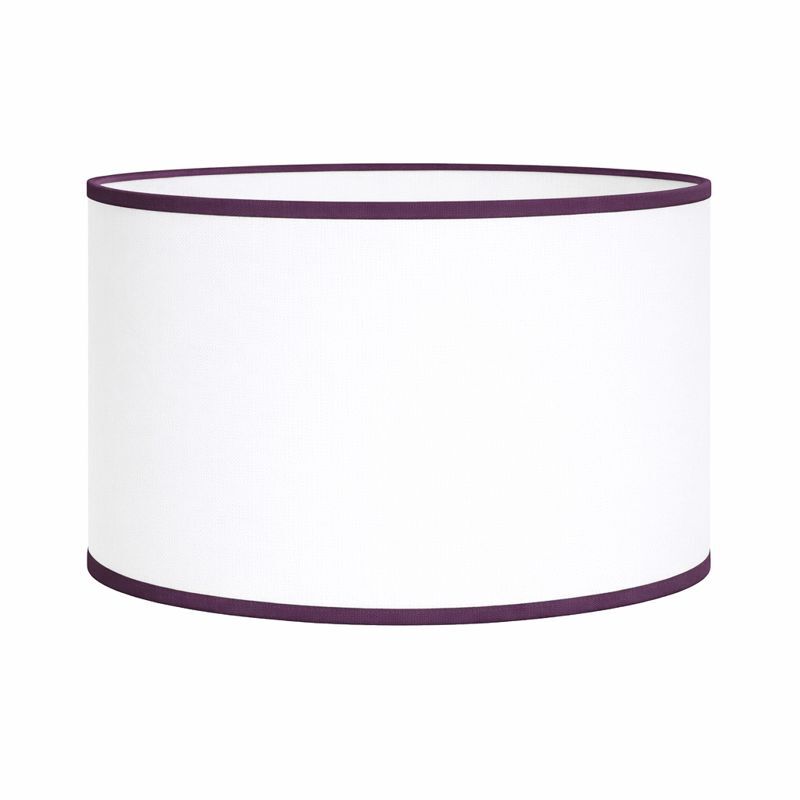 Abat-jour rond coton blanc bordure aubergine